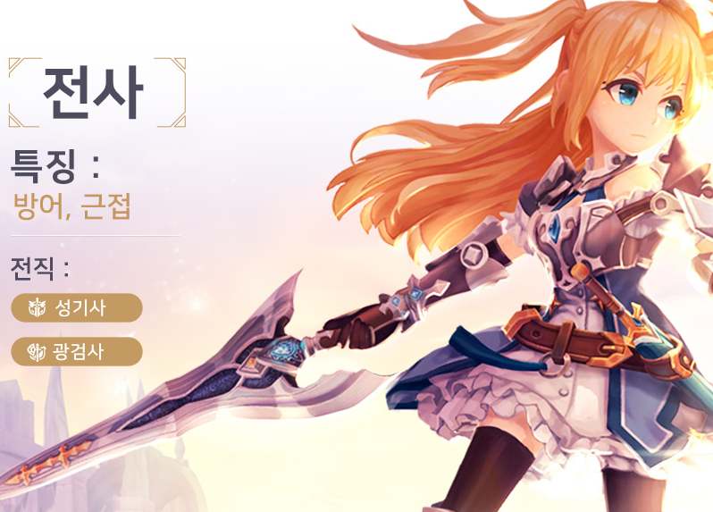 전사: 듬직한 탱커! 성기사나 광검사로 발전할 수 있어요