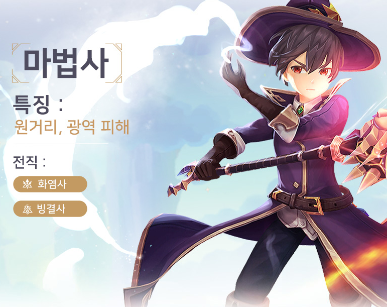 마법사: 원거리 딜러로 화염사나 빙결사가 될 수 있답니다