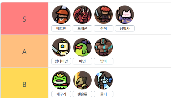 산적: 초반에 골드 모으는 목적으로 뽑아야하고,맨 왼쪽 앞줄에 많이 배치하면 좋은 영웅입니다.