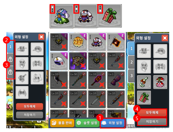 - 3개의 외형 슬롯 도입 (기본 1개 제공)