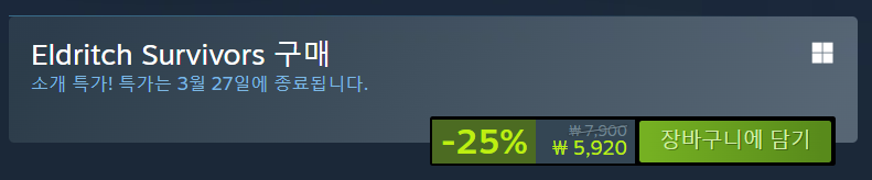 안녕하세요, 오늘은 여러분을 미지의 공포와 긴장감 넘치는 서바이벌의 세계로 초대할 게임, 엘드리치 서바이버에 대해 소개해드리려고 해요. 이 게임은 러브크래프트의 세계관을 배경으로 하여, 플레이어가 반복되는 죽음 속에서 주인공들이 처한 운명의 비밀을 밝혀내는 과정을 담고 있습니다. 지금 엘드리치 서바이버는 스팀에서 할인중이라고 합니다! 기간은 3.27일까지 라고 하니 구매 하실 분들은 지금이 기회겠죠?