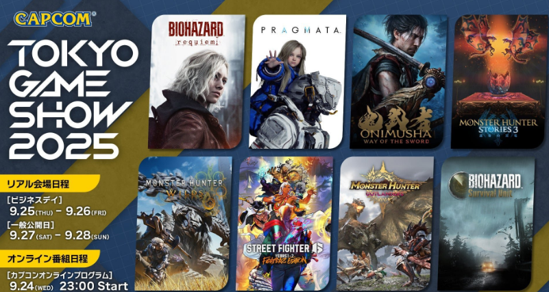 캡콤은 ‘바이오하자드 레퀴엠’, ‘귀무자: 검의 길’, ‘프래그마타’를 시연하고 ‘몬스터헌터 스토리즈 3 엇갈린 운명’을 세계 최초로 선보입니다. 현장 체험자에게는 오리지널 굿즈도 준비됩니다.