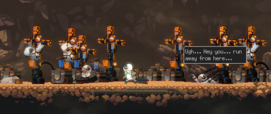 전면에 서 있는 건 역시 도트 표현이에요.