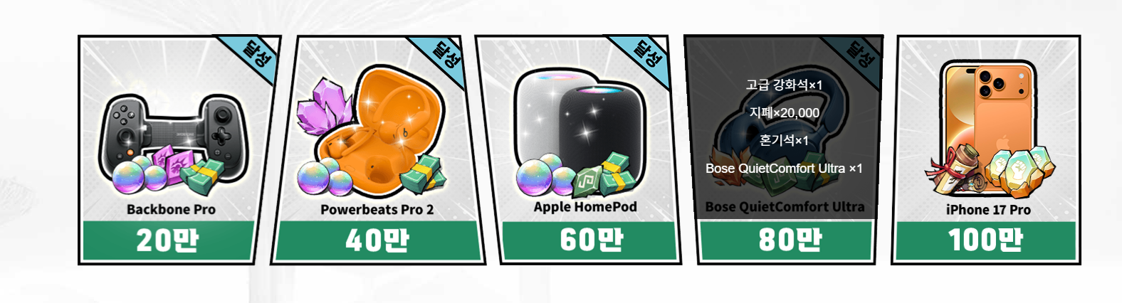 20만 달성 보상 유리환×100, 지폐×10,000, 수호부 강화석×50