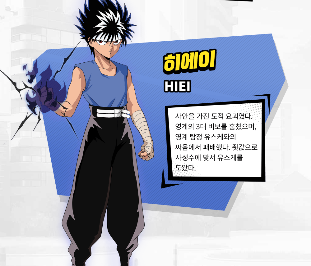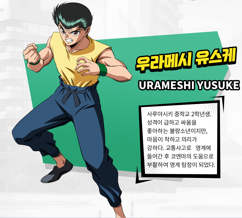 유스케, 쿠와바라, 쿠라마, 휴이 등 대표 캐릭터가 합류해요.
