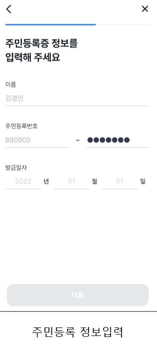 이름, 주민등록번호, 발급일자 입력.