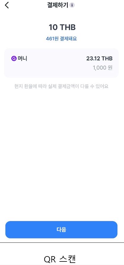 결제금액(THB)과 잔액을 확인하고 다음으로 진행.