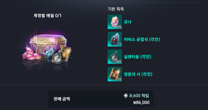먼저 8만 6,000원짜리 트리니엘의 큐나 보급 상자에 영혼의 서가 포함돼 있었고,