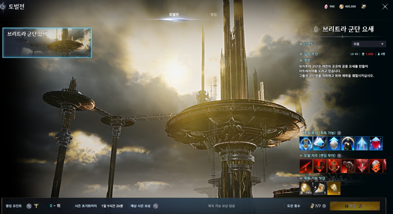 토벌전은 각성전의 4인 파티 버전이고 역시 주 7회입니다.