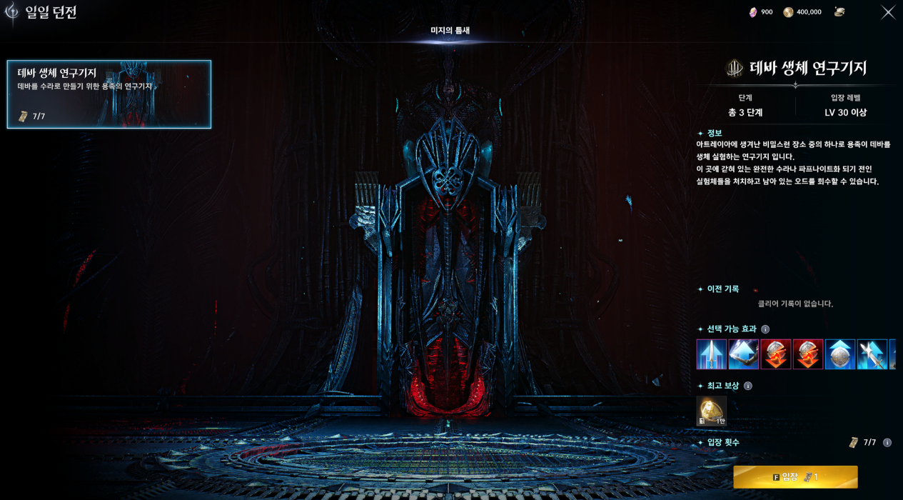 일일 던전은 강화석을 대량으로 챙길 수 있고 주 7회 돌 수 있습니다.