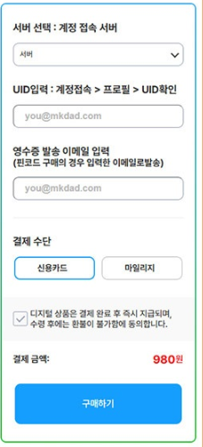 결제를 진행하기 전에 게임 안에서 UID와 서버명을 한 번 더 확인한 뒤,