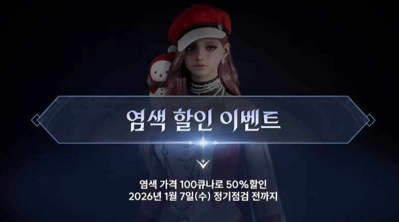 염색은 50% 할인 이벤트가 약 2주간 진행되며, 1월 7일 정기 점검 전까지로 잡혔습니다.