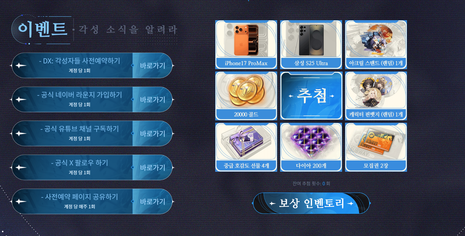 실물 경품 추첨 이벤트도 같이 진행하며, 삼성 갤럭시 S25 울트라, 아이폰 17 프로 맥스, 게임 굿즈가 포함됩니다.