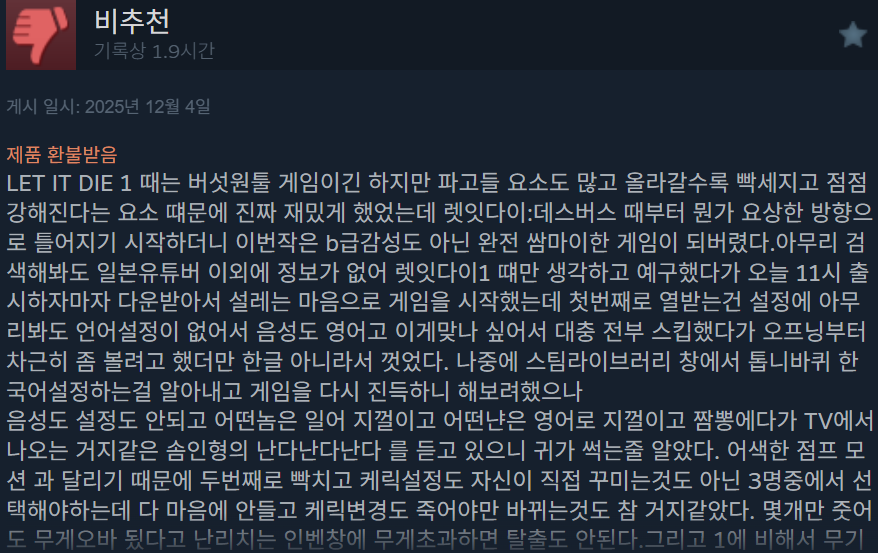 그럼에도 불구하고 조작감 옵션, PvP 강제도, 탈출 미션의 부담 같은 큰 불만이 남아 있습니다.