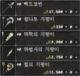힘의 지팡이는 근거리 데미지 3, 힘 3이 올라간다는게 포인트입니다.
