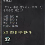 보호망토도 상점가는 38,500 아데나로 동일합니다.