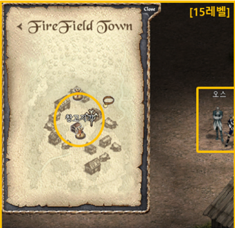 오스에게 말을 걸고 퀘스트를 받습니다.