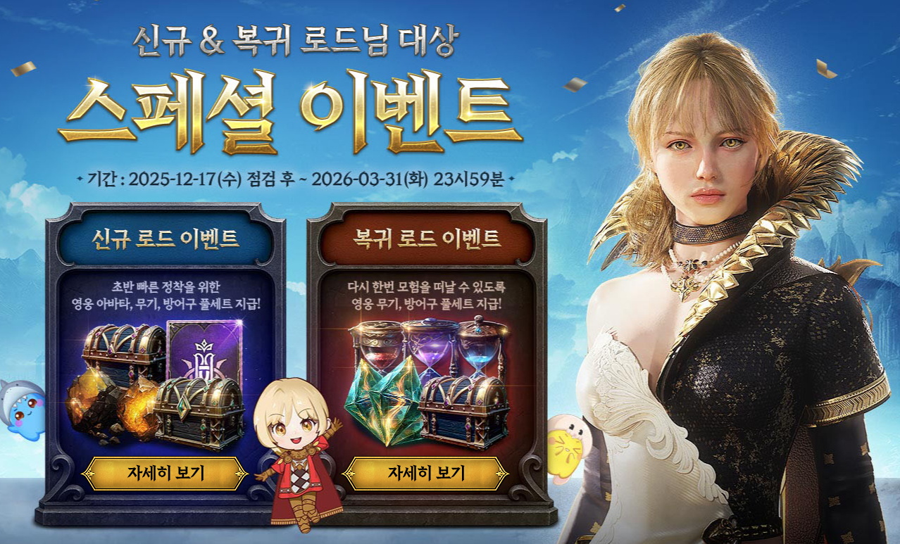 보상은 오픈 후 쿠폰으로 지급되고, 검은 오르 200개, 골드 꾸러미 상자 5개, 중급 승급서 30개, 숙련 승급서 30개, 찬란한 오르페의 축복 20개, 어빌리티 성장 가속 영약 III 20개가 들어갑니다.