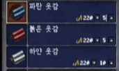 붉은 옷감 3개도 챙겨야 하고, 제작 아데나는 3만을 준비해요.