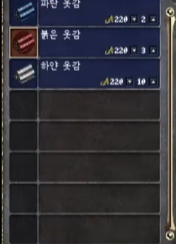 옷감은 기란 마을에서 방어구 상인 근처로 가면 구매 동선이 잡힙니다.