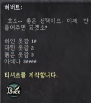 인벤토리에 옷감과 아데나가 모두 있으면 바로 완성돼요.