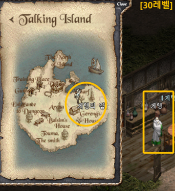 퀘스트는 말하는 섬 필드에 있는 게렝에게서 받아요.